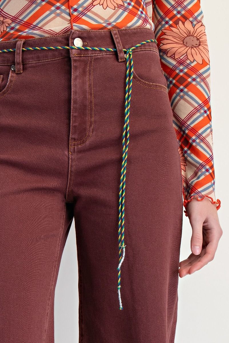 SEO Keywords: Vintage wine wide leg jeans, high waisted burgundy denim, women's frayed hem trousers, colored wide leg pants, boutique fall denim, trending maroon jeans, relaxed fit apparel