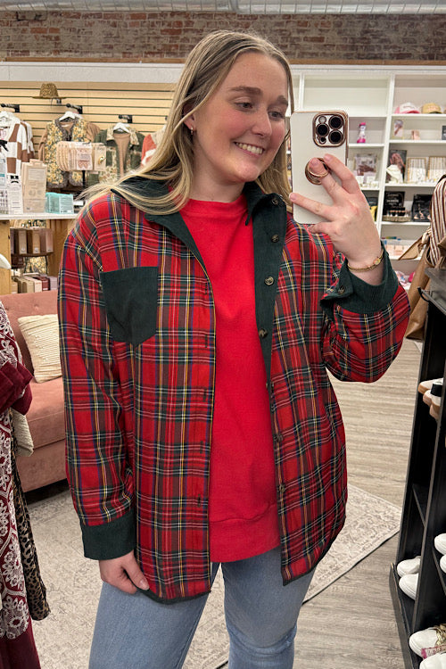 reversible shacket, plaid corduroy jacket, winter layering piece, women’s button-down, holiday plaid shirt jacket, Moonshine and Lace Boutique