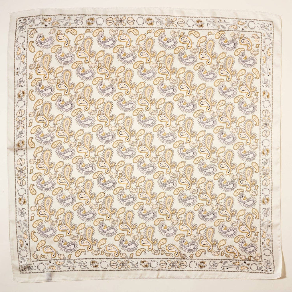 Elevate your wardrobe with the Classic Paisley Silk-Feel Bandana in Mustard, featuring a timeless paisley motif. Crafted from soft, lightweight polyester with a luxurious silk-like finish, this versatile accessory drapes beautifully and adds effortless style to any outfit.