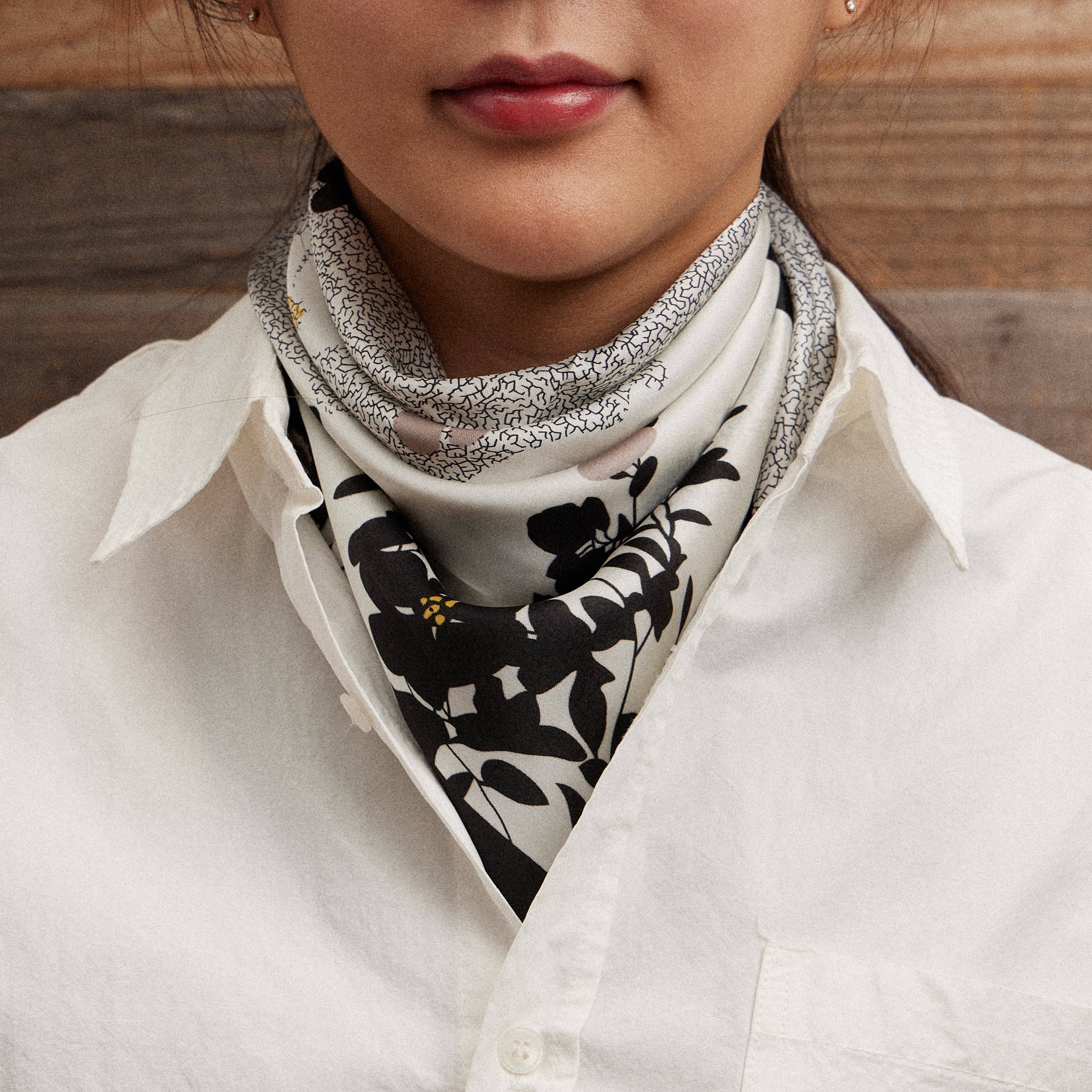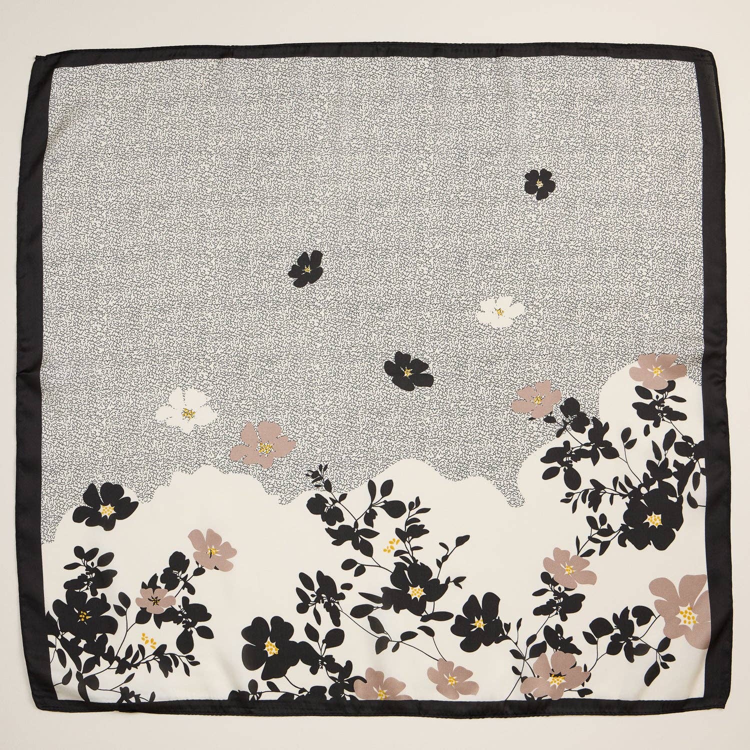 Minimalist Floral Silk Texture Square Scarf – Black/Grey