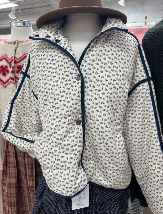 Romi – Navy & White Floral Quilted Jacket