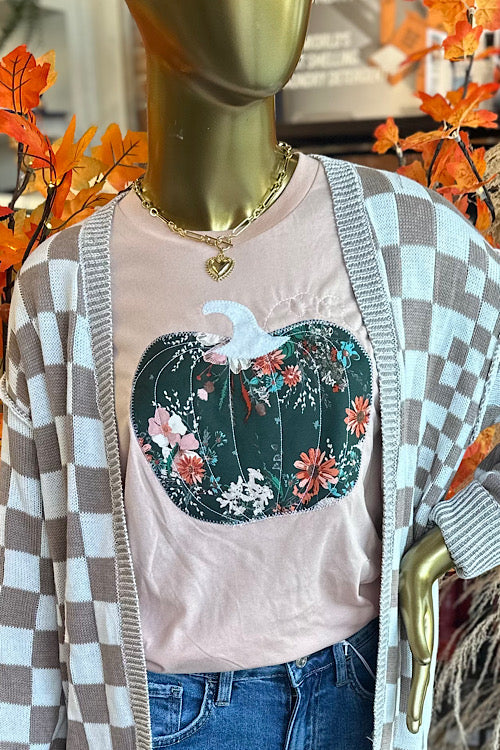 Fall Floral Pumpkin Appliquéd Tee - Peach