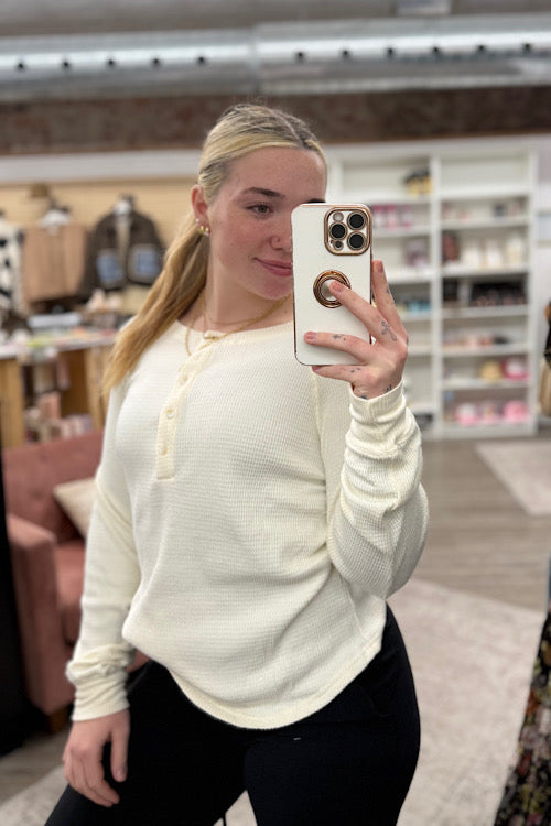 Effortlessly versatile, the Amy top is your everyday essential with a touch of sophistication. Its ribbed knit texture and buttoned crew neckline give this classic Henley silhouette a stylish upgrade that layers beautifully through the seasons. This is the perfect layering top.