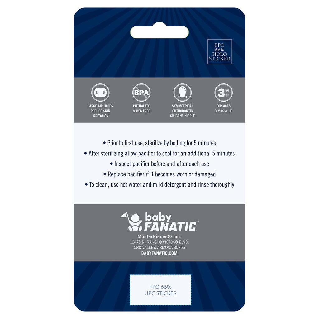 Looking for a way to soothe your little Kansas Jayhawks fan? Look no further than these officially licensed NCAA Kansas Jayhawks pacifiers. The Orthodontic Silicone Nipple and plastic shield make them safe for your child's mouth, while the Team Logo And Colors on the "button" and shield respectively let everyone know who they're rooting for. These pacifiers have been quality and safety tested to be 100% BPA-free and are suitable for infants ages 3 months and up. To clean, use hot water and mild detergent and rinse thoroughly. WARNING: Do not tie the pacifier around the child's neck as it presents a strangulation danger.